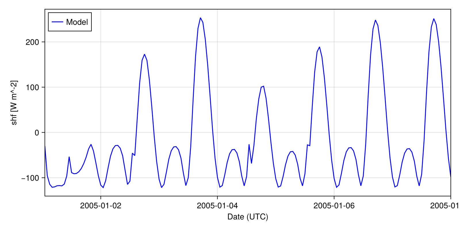 );Note the holder structs for the radiation and atmosphere functions: they are named Prescribed. In coupled simulations, we would use a different type and rely on multiple dispatch to obtain the atmospheric and radiative quantitites from the coupler.
