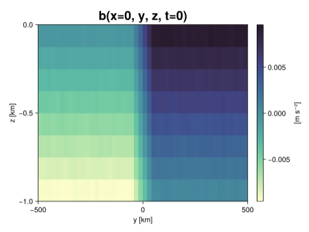 tracer_advection = WENO())HydrostaticFreeSurfaceModel{CPU, RectilinearGrid}(time = 0 seconds, iteration = 0)